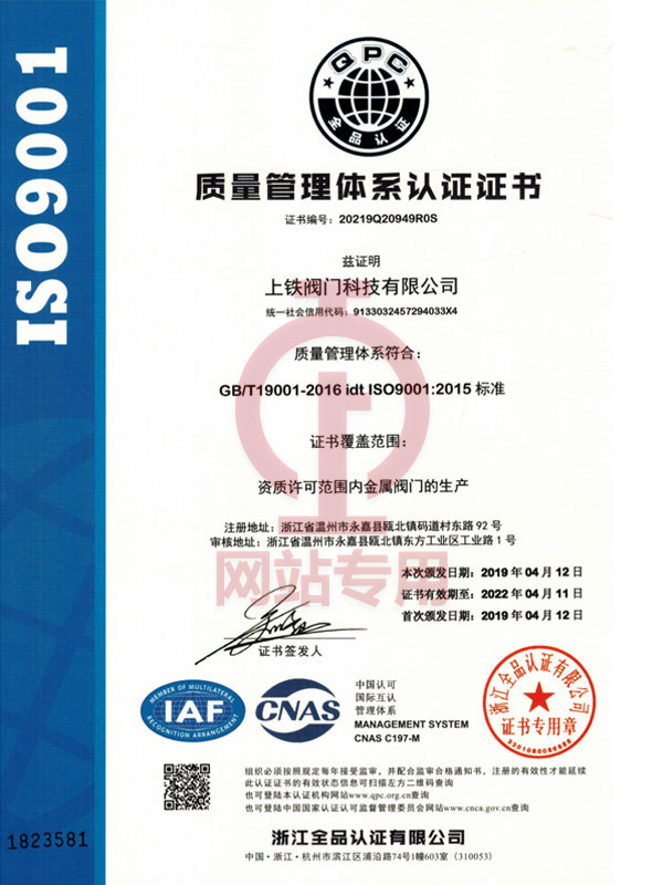 上鐵閥門科技有限公司位于“中國(guó)泵閥之鄉(xiāng)”——溫州甌北,交通便利,是一家集設(shè)計(jì)、制造、銷售、服務(wù)于一體的專業(yè)閥門廠家,公司主要生產(chǎn)美標(biāo)閥、電站閥、國(guó)標(biāo)閘閥、截止閥、止回閥、球閥、蝶閥、水封閥、真空閥等系列產(chǎn)品,產(chǎn)品規(guī)格從DN10—1800mm口徑,公稱壓力從PN1.0—42Mpa,規(guī)格齊全,材質(zhì)多樣,并可根據(jù)客戶要求配置齒輪傳動(dòng)、蝸輪蝸桿傳動(dòng)、氣動(dòng)、電動(dòng)、液動(dòng)、氣液聯(lián)動(dòng)裝置。